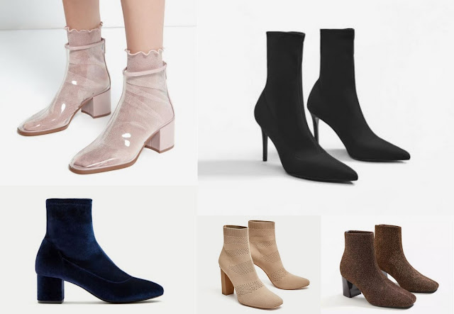 Los segundos, en la primera fila, tienen el tacón bien alto, pero la altura del "calcetín" me atrae muchísimo. Son de H&M y valen 39,99.